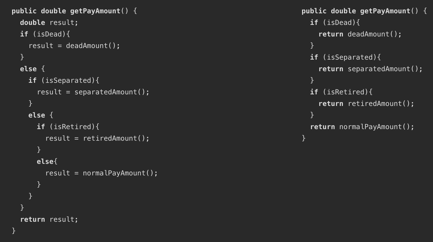 不好修改, 修改太分散(shotgun surgery 散弹式修改)有时需要在好几个else if里面加同样的代码