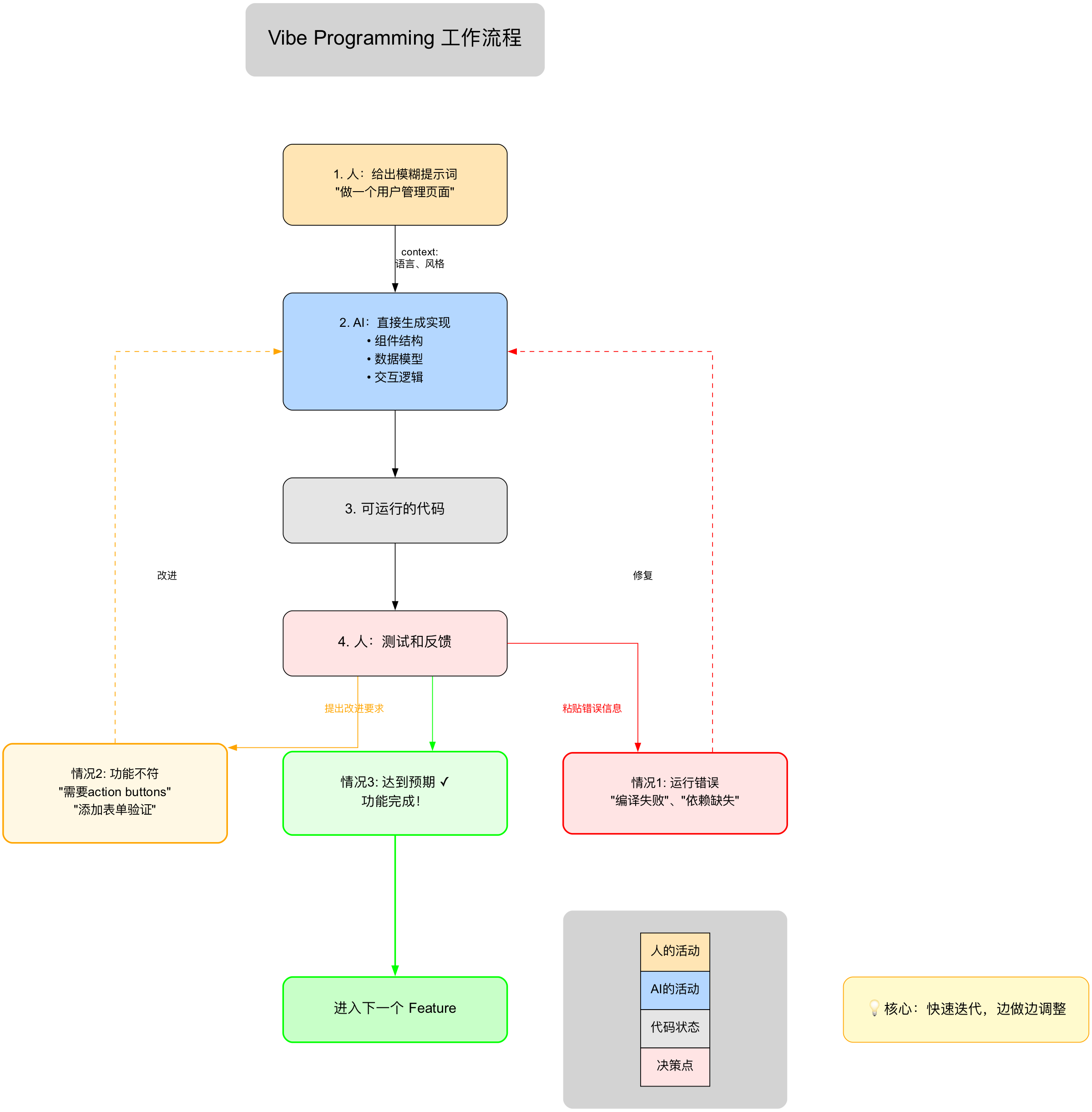 下面的流程图展示了 Vibe Programming 的完整迭代循环: